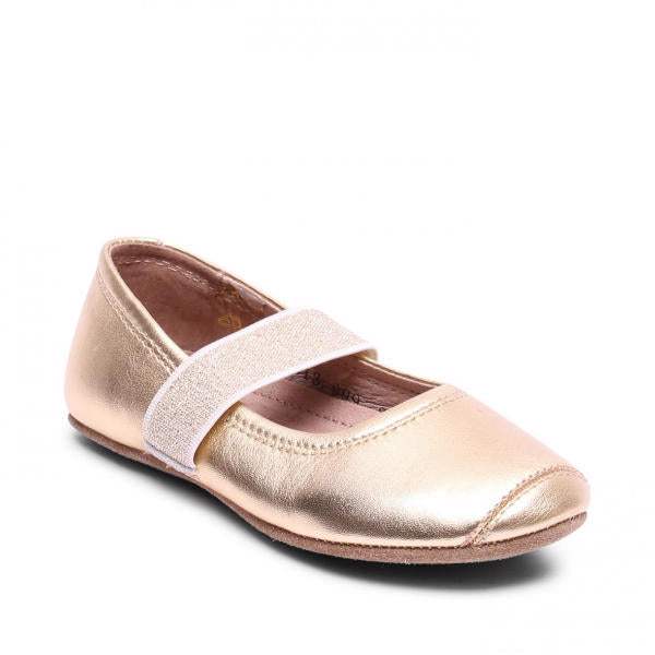 Ballet ballerinasko fra Bisgaard Guld farvet ballerina sko i lder med et flot ballet-look fra danske Bisgaard. Ballerinaen sidder fast p fdderne ved hjlp af en smart elastikrem. Bld fleksibel skindsl med skridsikre felter af naturgummi. Velegnede til medi