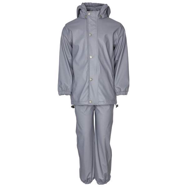 Flint Stone rainwear set solid regnst fra En Fant Smukt og enkelt st regntj med seler i ensfarvet gr farve fra danske En Fant. Sttet bestr af en regnjakke og et par regnbukser. Regnjakken har en aftagelig htte, der sidder fast med slvfarvede trykknapper.