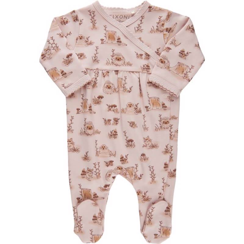 Soft rose romper heldragt LS fra Fixoni Smart Fixoni heldragt i en lækker rosa farve fra danske Fixoni. Heldragten har en rund halsudskæring med en smal ribkant, der kan åbnes fortil ned langs siden med trykknapper. Dragten er lavet i en lækker blød ri
