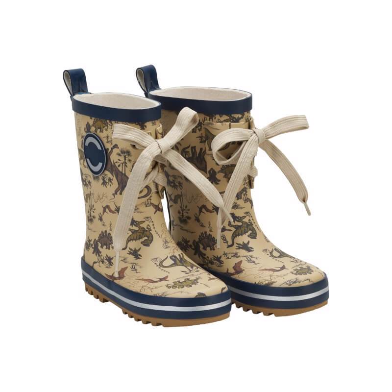 Olive gray gummistøvler med print og snørebånd fra Mikk-Line Smarte og lækre kvalitets gummistøvler fra danske Mikk-Line i en flot grøn farve med fine dinosaurdetaljer i brun. Mikk-Line gummistøvlerne er i en flot grøn farve med et allover print af dinos