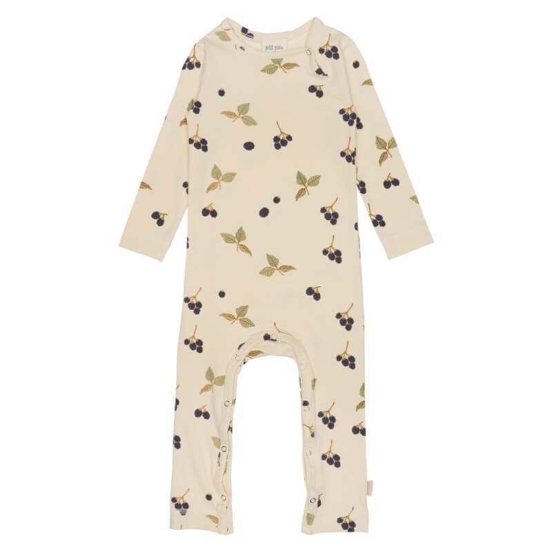 Blackberry jumpsuit L/S printed fra Petit Piao Smart heldragt i en lækker creme farve med print fra danske Petit Piao til børn. Heldragten har en rund halsudskæring med en smal ribkant, der kan åbnes helt op med trykknapper mellem benene. Derudover har