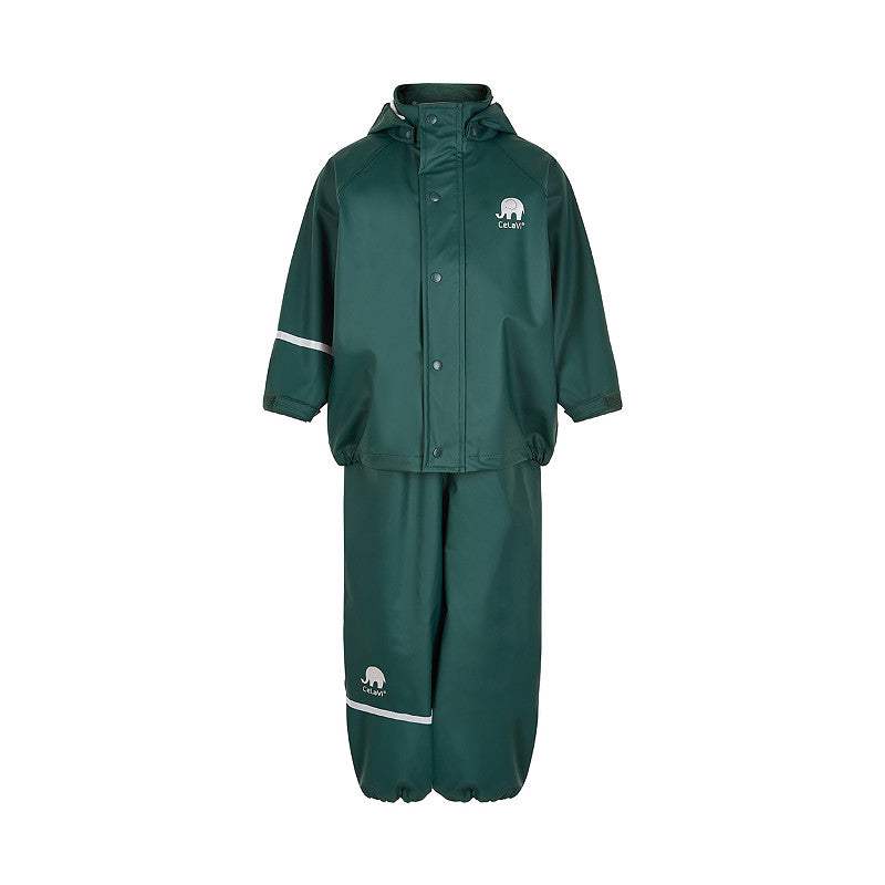 Grøn PU basis regntøj fra CeLaVi Prisvindende mørke grønt basic regnsæt fra danske CeLaVi. Regntøjet er blevet kåret til “Best in Test†i Tyskland. CeLaVi's regntøj er både praktisk og slidstærkt og har en god pasform, som passer både drenge o