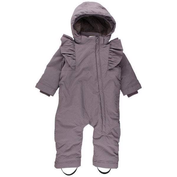 Sparrow Horizon flyverdragt fra En Fant En smart funktionel grå/lilla flyverdragt til piger med flæser og aftagelig hætte fra danske En Fant. Flyverdragten er foret med teddy fleece så den er blød og lækker at røre ved. Den har lynlås som skråner ne