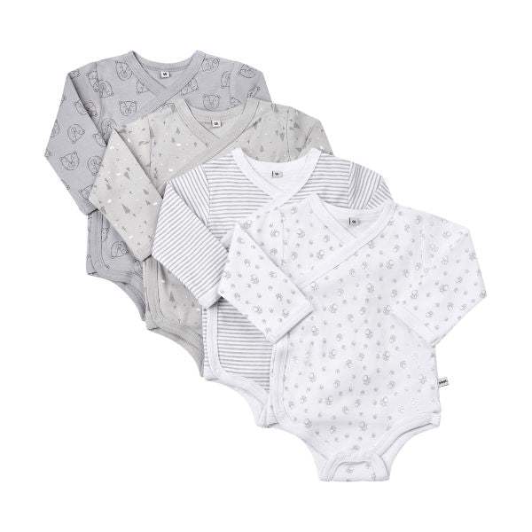 Harbor mist sl-om-body 4-pak fra Pippi Lkker pakke med 4 forskellige hvide og gr sl-om bodystockinger fra danske Pippi til bde drenge og piger. Bodyerne har lange rmer og en flot bning om halsen der kan lukkes rundt om barnet. De bnes med trykknapper mell